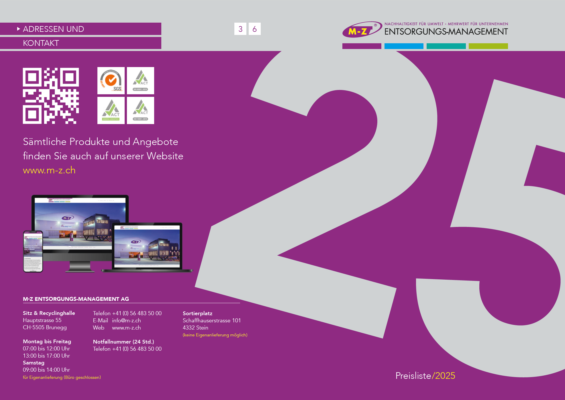 Gerne nehmen wir Ihre Wertstoffe und Abfälle Samstag zwischen 09:00 und 14:00 Uhr bei uns in Brunegg entgegen.